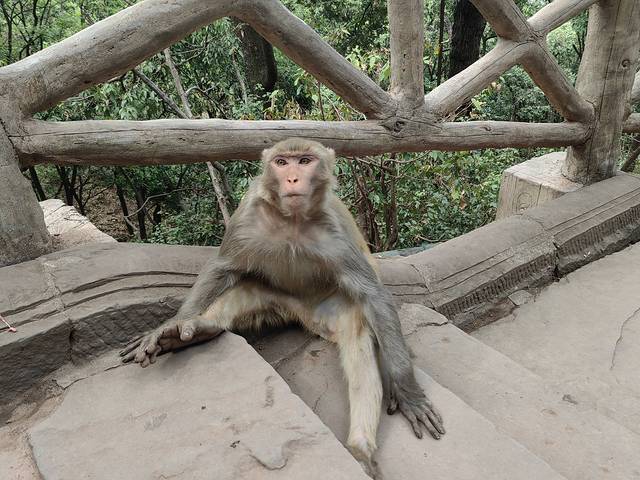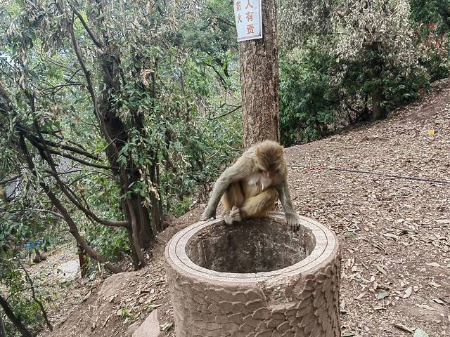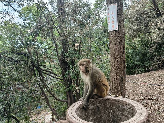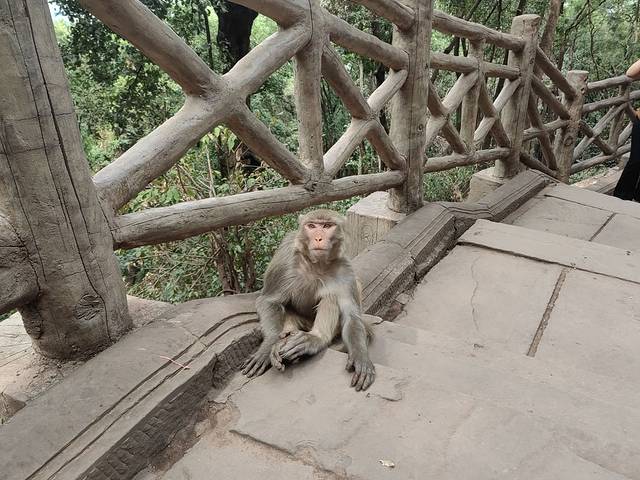 泸山古木参天,山峦奇秀。这里猴子成群结队,胆大包天,无论男女老少,只要你带着包或食品,猴子都会拦路抢劫,如果是女生建议带上一根竹竿驱赶。猴子不会主动攻击游客,但是抢你的食品必不可少,胆子大的带头大哥,会做各种威胁你的动作,如用力摇晃树枝,发出警告声音,凶狠的眼神,或径直向你奔赴等等。女生百分百会被吓着,我是爷们,和猴王对视过眼神,迎面冲过去,猴王还是被我赤手空拳吓退。下山途中遇到一只特别温顺的猴妈妈,眼神温暖,没有任何敌意,我们给它拍照非常配合,还会摆各种姿势,甚是可爱,特别买了花生喂了她,临走还有些依依不舍。