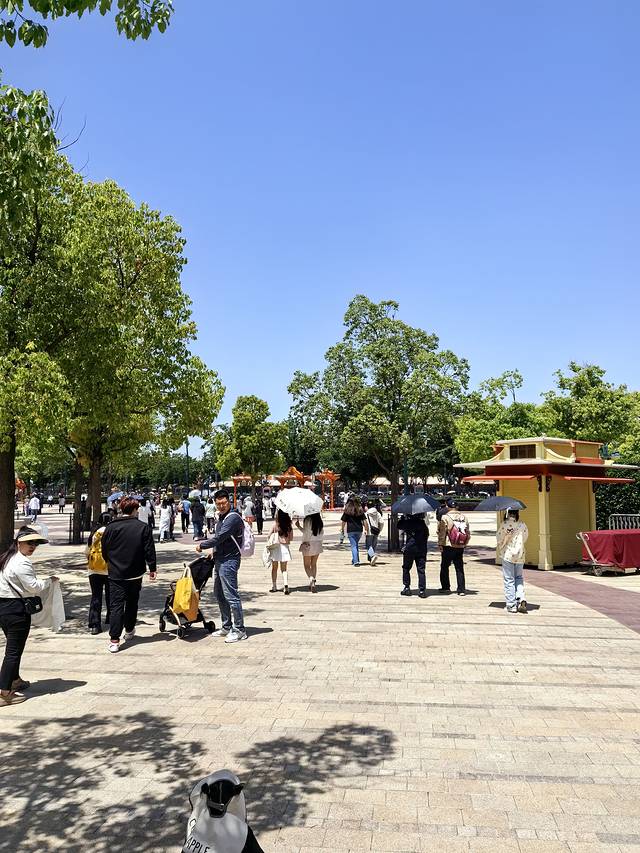我们今天进门第一个项目是独木舟🛶(排玩40分钟)。当时在小广场看到了旋转木马🎠,不用排队,但是小奶酪已经玩过了太多太多,对此不在感冒。在app查完攻略后,发现距离最近的一个项目就是独木舟,排队的人也不是很多,大概20分钟的样子。属实说跟网上的攻略说的差不多,就是一帮人持浆划船🚣绕湖一周,没有什么意思。玩完之后想着去雷鸣山漂流,但是排队时间需要一个小时起,与童话剧冲突。所以放弃,赶紧前往下一个地点观看童话剧。