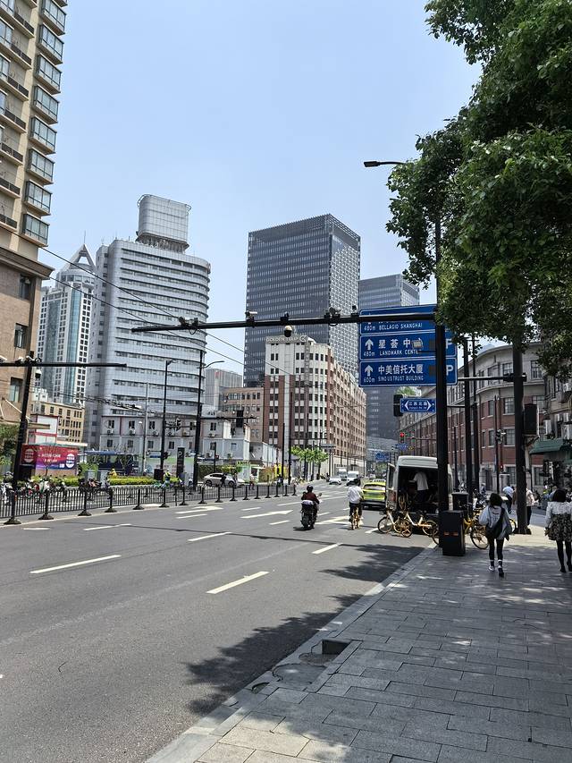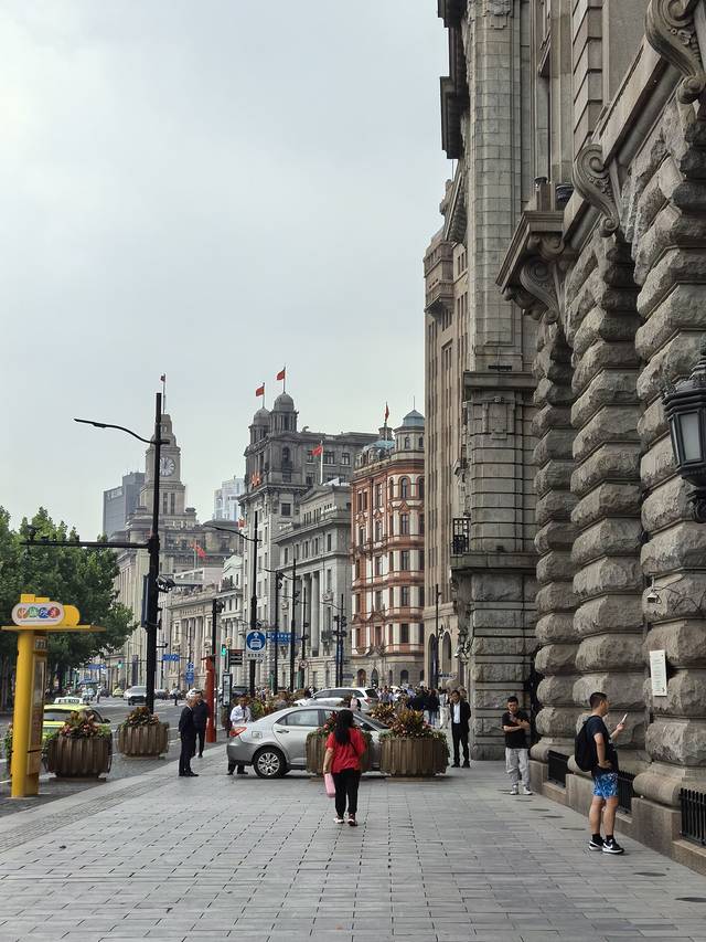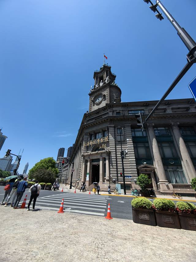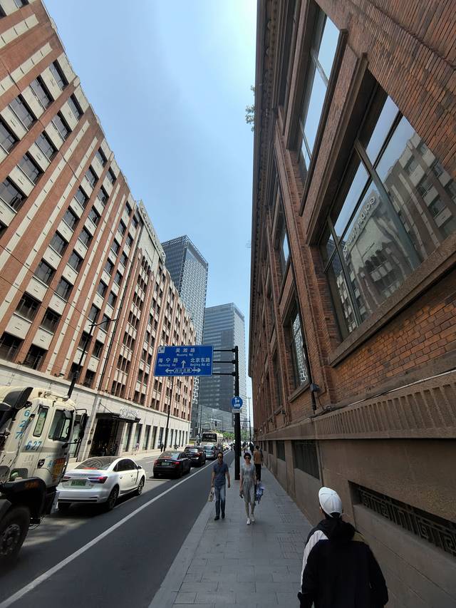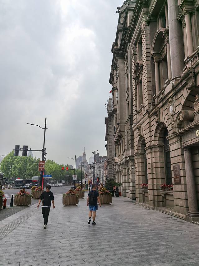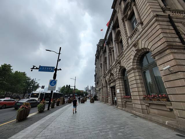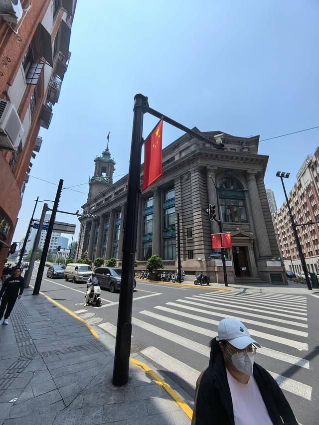 下了船,我们一路向北找吃饭的地方,套马汉子想着是不是吃完饭能去趟武康路转转,完成今天的行程计划。然后套马汉子就开始询问放羊姑娘和小奶酪想吃什么,他们一个要吃赛百味一个要吃薯条。然后估算了一下去武康路大概时间,就决定先吃饭。打开手机导航,发现最近的一家赛百味不是很远,然后就向北寻找,一直到外滩牛这(交通银行旧址附近)。走了半天发现路走反了,现在越走越远。而且周围也没有KFC和麦当劳,套马汉子一看时间就是不吃饭到武康路也来不及了(决定放弃武康路打卡,有机会再说吧)。而且再从新定位找吃饭的地方还要走半个小时的路,刚才从下船到外滩牛这已经走了40分钟(连走带拍照,还和做错轮渡方向有关),和放羊姑娘经过讨论,决定哪也不去了,就找吃饭的地方,然后回酒店休息,今天又走了两万步了,跟在广州第一天差不多,而且也没少打卡地方。
