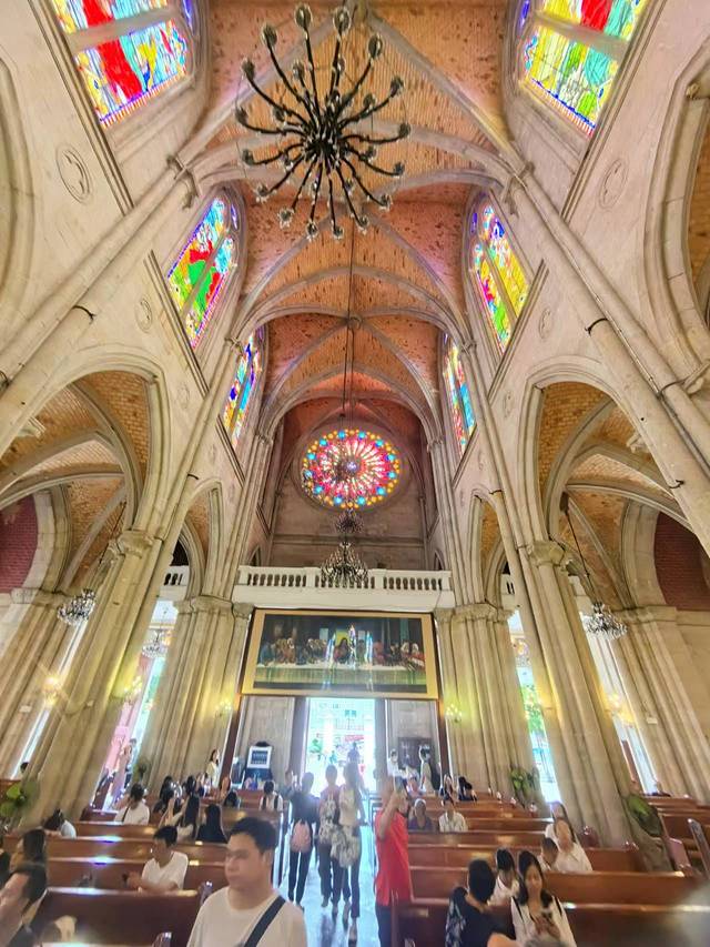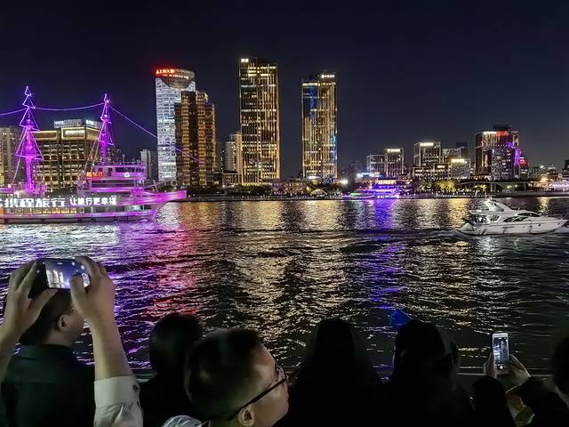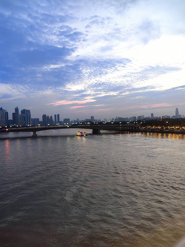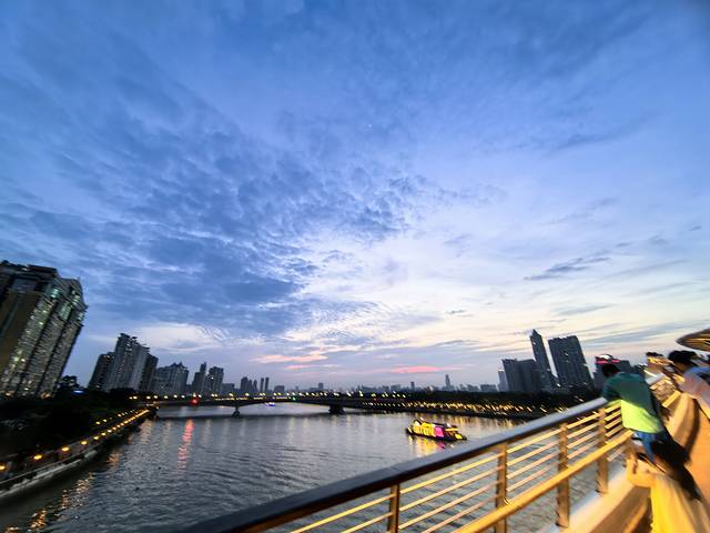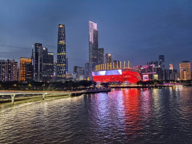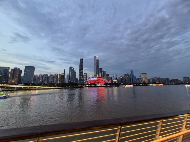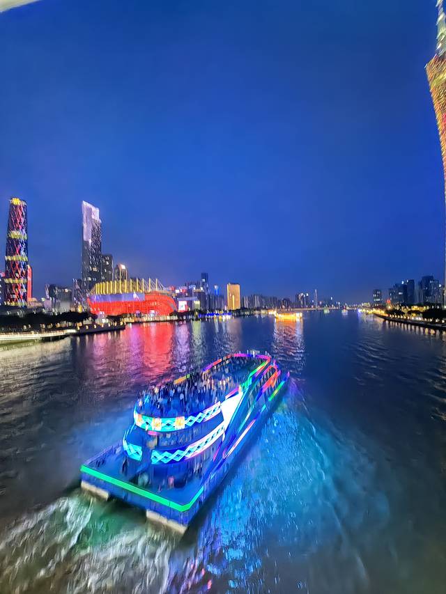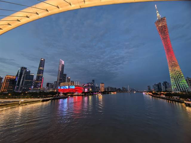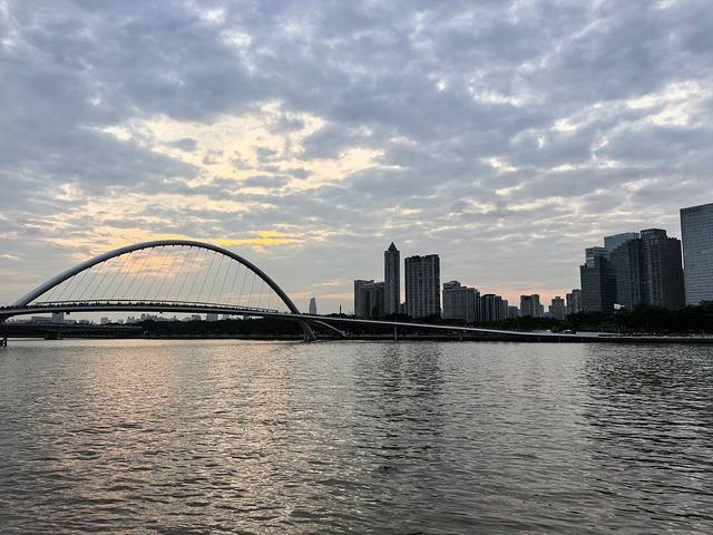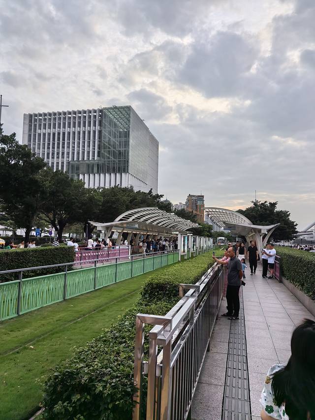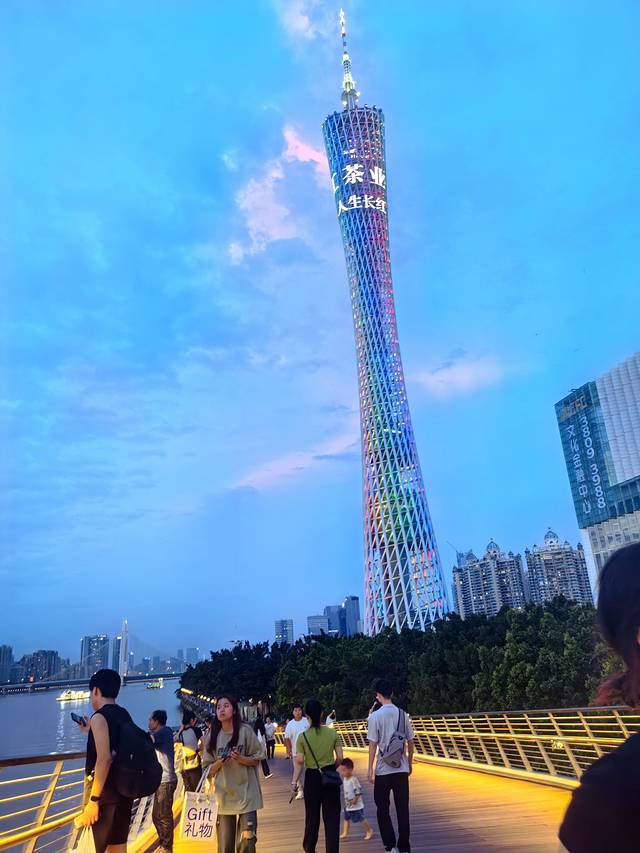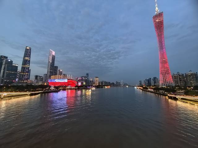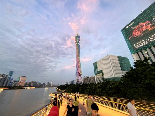 今天的安排基本就是步行加公交游览,在提前做好行程规划后就轻松的开始了,中午走到石心大教堂时基本上就有了一万五千步(这期间套马汉子还利用中间路过的儿童玩具商店给小奶酪买蛋仔派对卡片的间隙把明天去长隆的门票都买完了),后来到沙面,我们本打算在黄沙码头体验一下广州水上公交,结果到了才知道,广州的水上公交基本上处于停航或升级阶段,目前能运营的没有几条线路,而且相互通航也只限于本地出行。对于想通过水巴体验并旅行一点用处都没有。没办法只能,改地铁继续前往下一站打卡景点。当我们前往广州塔时,已经下午五点多了,放羊姑娘和小奶酪实在有点走不动了。也确实是,2万步已经有了!我们在换乘的地铁站里经过了激烈的讨论和商讨是先吃饭(放羊姑娘就是想大吃一顿广州的小吃美食)还是先看广州塔的问题上,最终达成一致。就简单的看一下广州塔然后打卡就走(其实套马汉子想看看广州塔亮灯后的美景,据说亮灯后的广州塔比白天更漂亮)。当走出广州塔站的那一刻,小奶酪和放羊姑娘就被小蛮腰的挺拔给征服了,加上天空的乌云逐渐散去,晚霞美景更是让人心动。大家似乎忘记了饥饿转而开始欣赏这眼前的美景。三个人一路溜达决定穿过海心沙大桥,然后到对岸再考虑吃饭。(穿过海心沙桥是要扫码接受安检的,而且周末高峰时还要限流),夜色中在霓虹灯装饰下的广州真的漂亮至极!!之前听说周末还有无人机表演,但是始终没有发现。