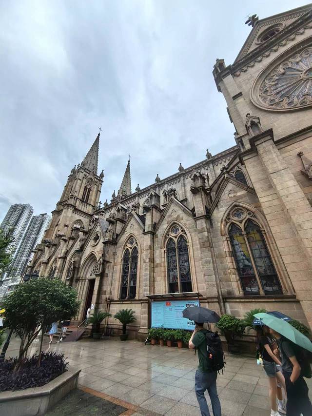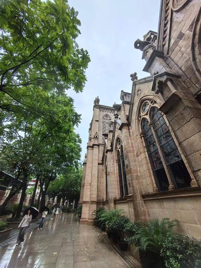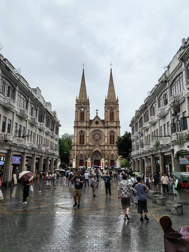 早8:00酒店起床;8:30酒店用餐。9:00出发步行200米到盘福路1站乘坐旅游公交1号线到陈家祠站下车,步行100米参观陈家祠,门票是10元。11:30沿着广州老街,步行1.8公里前往上下九步行街并在附近吃小吃。13:00吃完午餐,换上雨天出行装备(小奶酪直接上雨披)继续步行1.5公里前往广州圣心大教堂参观,感受西方的精神文化。14:30乘坐广州地铁6号线在一德路站上车在文化公园站下,步行700米到沙面风景区游逛,约2小时游逛。