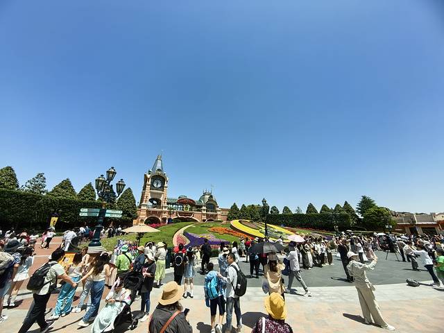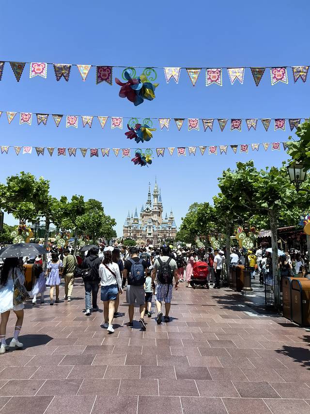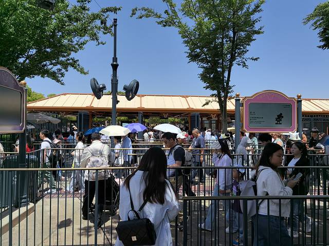 人是真多,大概一次性开放20多个通道,每个通道都有50多米的排队,所有背包都要逐一检查,我们大概11点入的园。放羊姑娘提前下载了一个迪士尼app,可以通过手机app查看项目实时排队信息和项目前往路线。当天有4万多人入园。非工作日,人们大概都是在10点到12点这个时间段入园(每天不用上班的人真的好多,在迪士尼就有4万多人,可想节假日要有多少人!!!)。早上或者上午来的基本上不用怎么排队就能玩,但是好多项目都是10点以后才开,特别是米奇的童话世界演出需要提前预约(放羊姑娘预约了12点40场)。