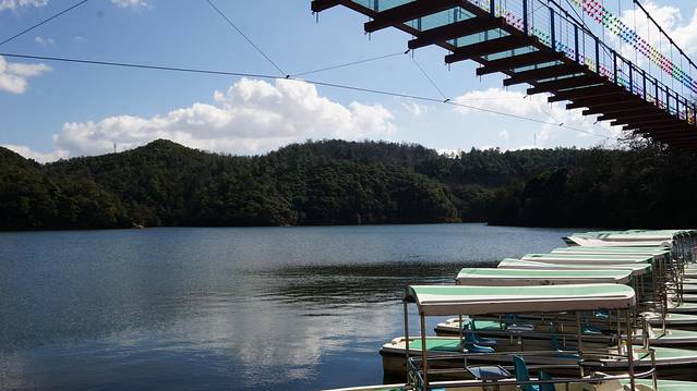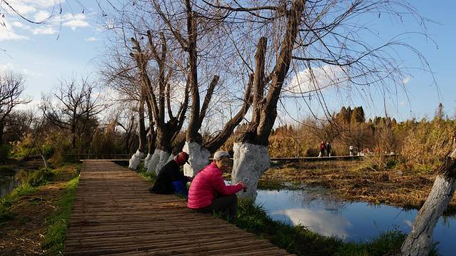 如今堤坝两侧种植了草坪,沿着堤坝到湖中游览观光感觉十分不错。