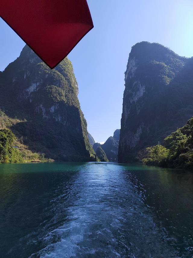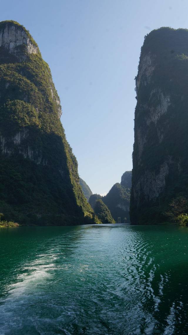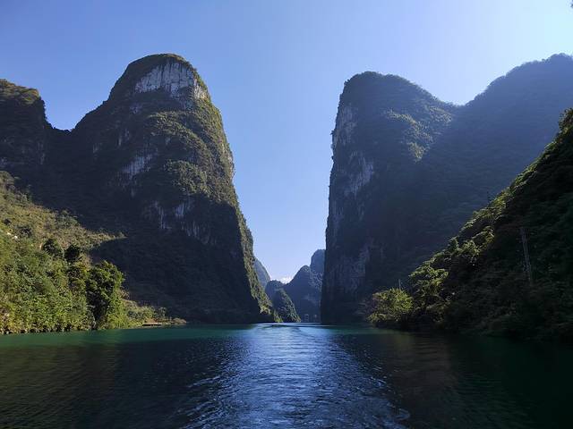 乘舟漫游沿途两岸山清水秀,峡谷悠长,景色既壮观又秀美。