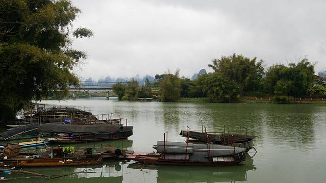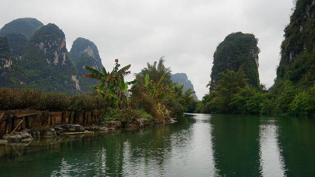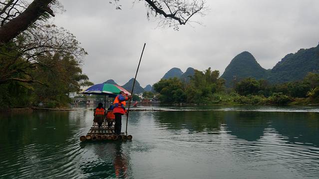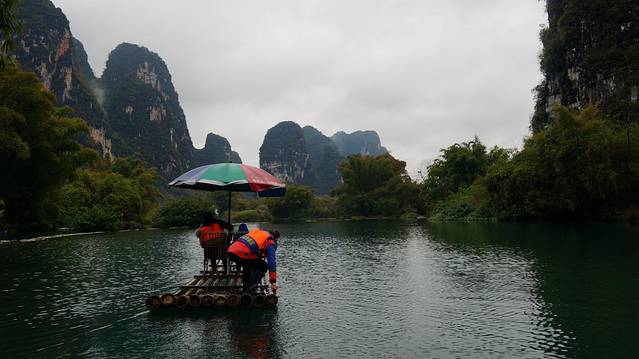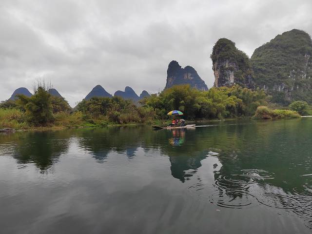 乘竹筏游览遇龙河,尽管是阴雨天,沿途的山水风光和壮族风情还是记忆深刻。