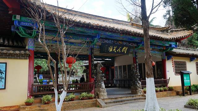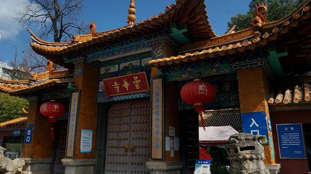 昙华寺,位于昆明市东门约3公里的金马山麓,金汁河畔,昙华寺内有一棵伏昙树,相传来自印度,昙华寺因之得名,古树依然耸立在昙华寺内藏径楼偏院内,墙上有石刻题泳"优昙献瑞"四个大字。