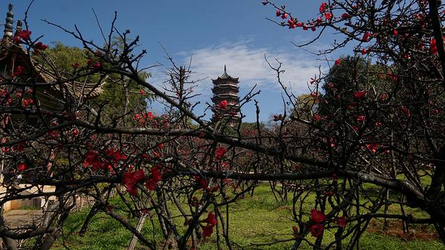 后园主要是"瑞应塔",塔高48米、七层八角,是一座可供游人登楼远眺的螺旋式观览塔。