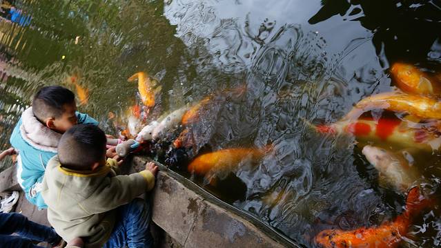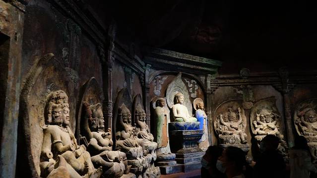 前园基本以原寺庙的三进院宇为主,亭台楼阁,假山水榭,花木竹林,回廊曲桥,错落有致。前园中供有财神殿可求财,500罗汉碑刻,佛祖.可以挂许愿灯笼.左园中可求姻缘。