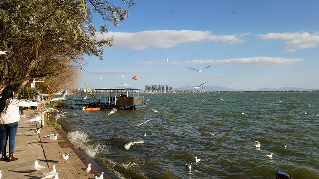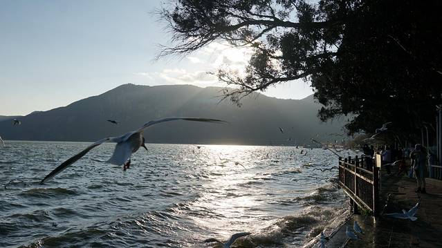 海埂顾名思义,就是指深入滇池中的一道长堤,这条堤坝把滇池分成了两片湖泊。