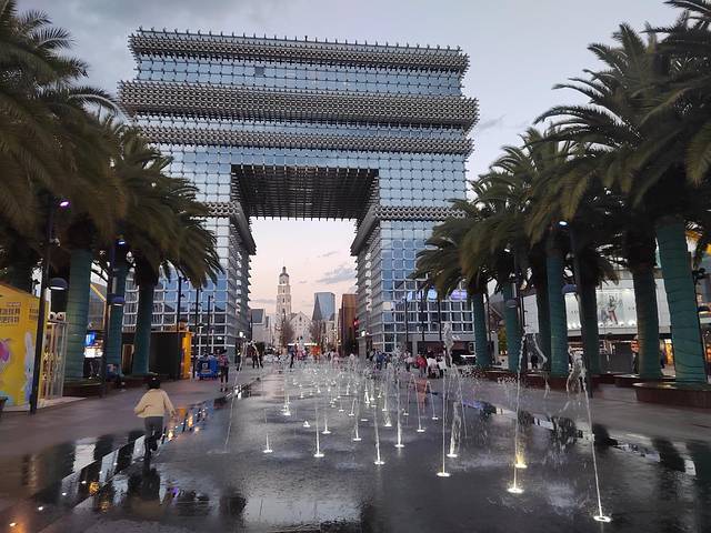 这里沿湖绿树婆娑,搭配了橙黄色的步道,各种色彩鲜亮的雕塑,环境清新优美。