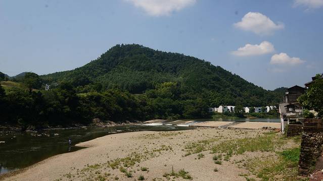 渔梁是歙县的一个镇,渔梁坝是建在练江上的水坝。练江的上游是黄山上下来的各支流汇集而成,下游便是新安江。