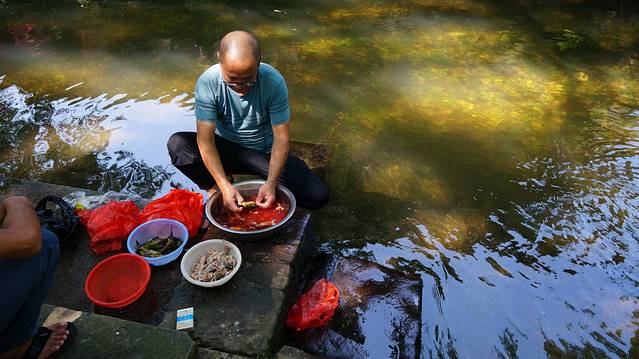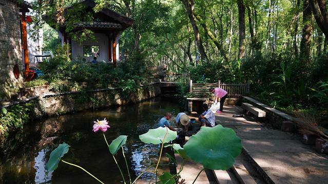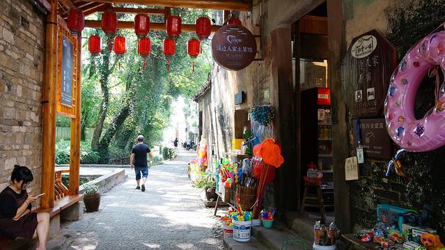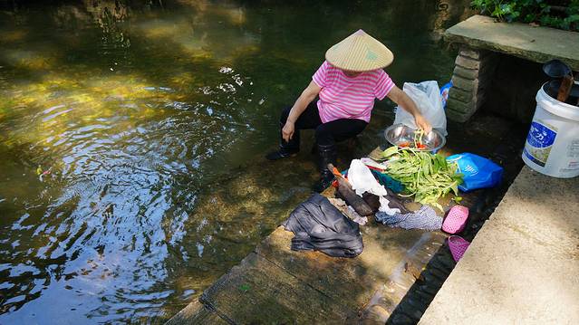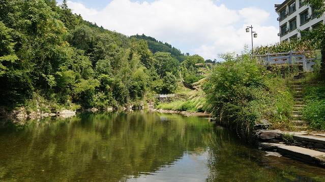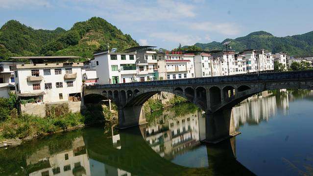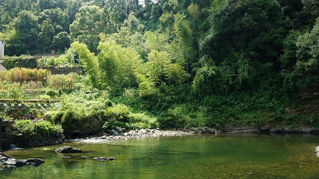 整个村子沿河而建,两岸架起一座座桥,有现代的石桥,有之前留下来的独木桥。