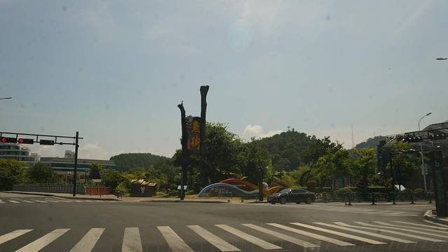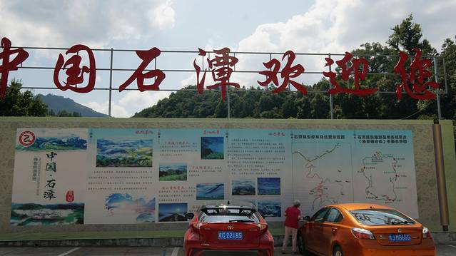 从芳华酒店开车五六分钟,一直沿着围墙走,不要右拐,上两个坡,下两个坡,在路的右手侧看到标牌便到了——但这个标牌不是太显眼,一不小心就错过了——提个醒,第二个下坡看到左手边有个小学、公共汽车停车场的对面就是。