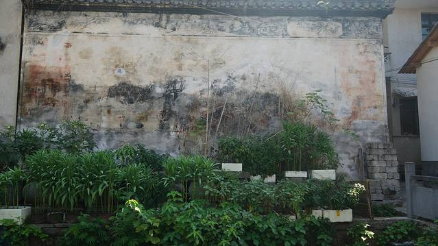 我们绕过胡同,侧门是圆顶的拱门,仄仄的,传说胡氏去世出后,不能走正门而专门修砌的。门顶上“墙里”二字,端庄而厚重,而边上的小字,时间的久远,加之文革的斧凿,已不甚清晰,相信是记载着着个伟大的徽州母亲感人至深的事迹。