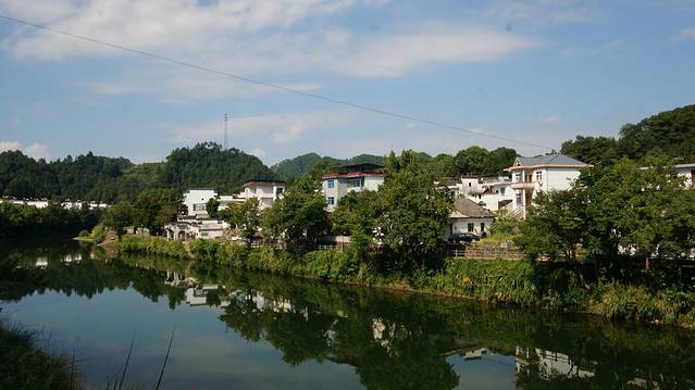 河的一侧是保留下来的古村落,居民基本都搬迁了,一侧是新盖的一幢幢小楼。