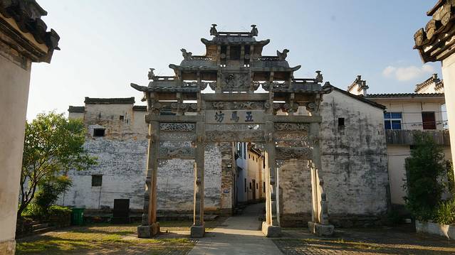 许国石坊建于1584年,由明代大学士许国衣锦还乡时在歙县建造,是国内罕见的大型石牌坊和全国现存的唯一八脚牌楼,被誉为“东方的凯旋门”。