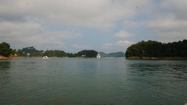 千岛湖,似一位婀娜多姿的江南秀女,有着修长的身材,青春靓丽飘洒率真,一湖碧水是她的青黛,一双清澈地眸子透露出友善的清纯,温婉娴静,素颜质朴的羞涩中有着浅浅地甜笑,来过千岛湖,就会爱上她,终生不变的爱。