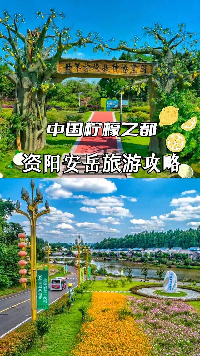 安森柠檬旅游区:这里是全国最大的以柠檬为主题的生态旅游景区,位于安岳县文化镇燕桥村,巨成都市约130公里,距重庆市约150公里,交通极为便利,闻清新柠檬味,开启一段安“柠”时光!