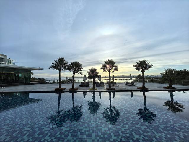 回望酒店,海边类似的酒店很多,也有一点自己的沙滩。