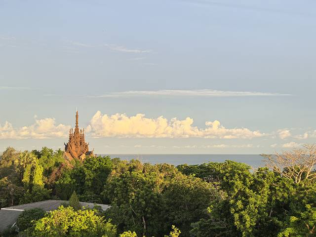 早上五点半起床,窗外已是阳光灿烂,一栋造型奇特的建筑映入眼帘,在绿树、白云和海水的映衬下显得格外引人注目,一查,叫啥,“真理寺”,属于当地著名景点。出门跑步,想跑到海边去看看,结果愣是找不到路。