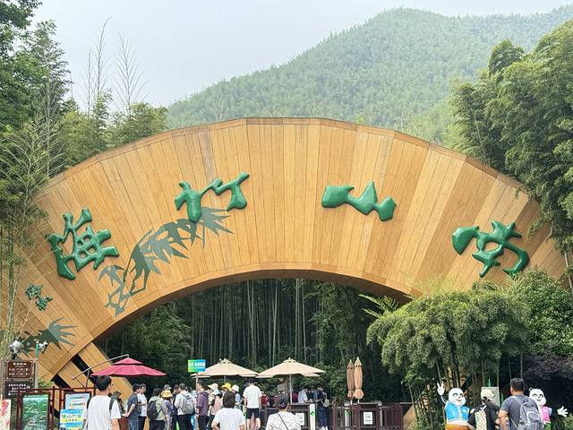 坐地轨车上山,山上有鸡鸣村、金宅、竹子博物馆、熊猫馆等