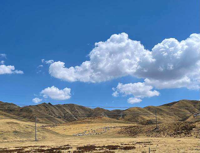 如果你和我一样,也不想错过大西北免费馈赠的风景,那就走国道吧!你会路过草原,看见雪山,被羊群短暂的挡住前进的路,翻越一个个高原山头,感觉蓝天都触手可及,天地辽阔在此刻具象化。