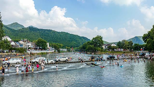 夏天的月亮湾堪比江浙沪人民的自驾天堂,因为这里巍峨的高山隔绝了都市的喧闹,清澈的流水洗涤着夏日的烦闷,无论是漂流还是戏水,大人或是孩童,都能找到他的专属欢乐。