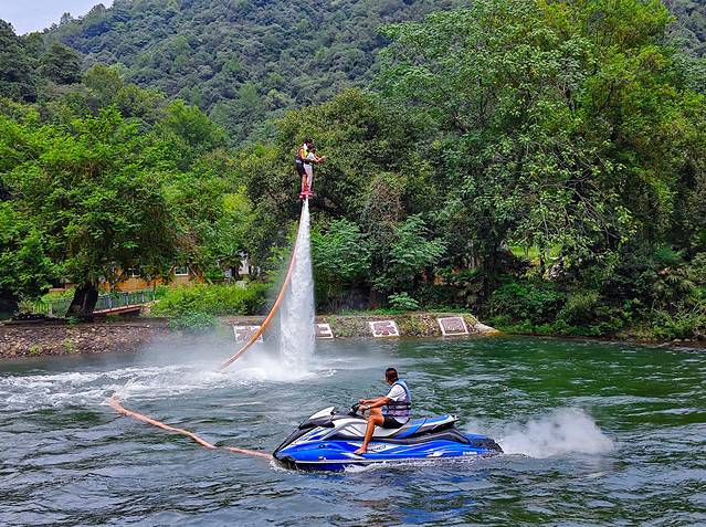 在绿林谷游玩就像是打开了潘多拉魔盒,你可以体验在“矿泉水”上漂流,他被誉为皖南生态第一漂,这里的水源达到国标III类标准,漂流全长3公里;你也可以在山谷水上乐园体验水上飞人等项目,在水流的冲击波下一飞冲天;或是开着越野卡丁车来一次山地巡游,过高坡下险滩;去孔雀园体验喂养孔雀的乐趣,在儿童乐园跟孩子一起收获童心。
