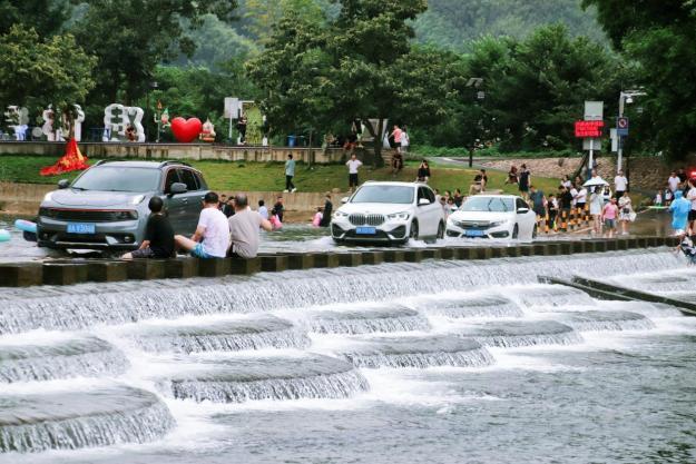 解锁赵村里,从村口的河流玩水开始!如果说漂流是山野冒险,那这里早就是冒险后的乌托邦。村口的河流因修建了鱼鳞坝,车辆可以从上面通行,河流水位相对较浅,深受广大游客的喜爱,在这里开车冲水、下河踩水才是避暑的最好方式。沿街的店铺林立,售卖着各种玩水工具,即便你是路过,也不用愁没地方买道具啦!