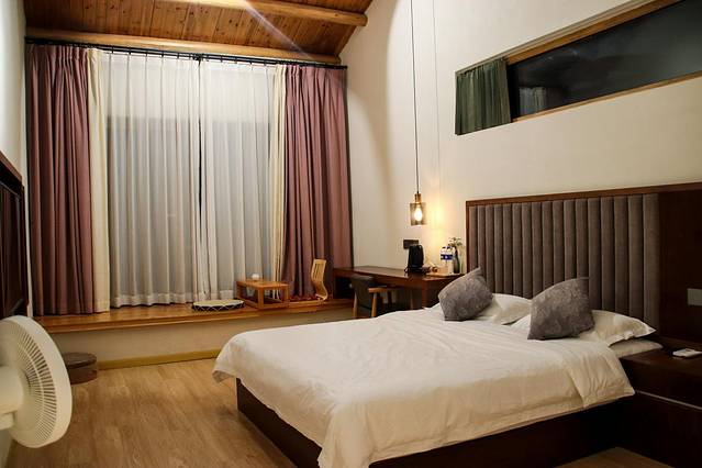 皖南的院子,盛满了山水的诗意。民宿位于泾县桃花潭畔,它临水而建,以阡陌作线,用烟火点缀,与书册为伴,彰显看得见的诗意,望得见的文艺。它是桃花潭桃花书院民宿,一宿一主题、一处一风景,从房间到书吧,将属于桃花潭的书香气融入住宿中,打造了一个别致的书院空间。书院还设置了一个大型的书吧,在这里,你可以用一个下午的时间,阅读、品茶、习字,感受感受浓浓的书院气息。
