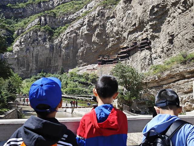 🔴🔴🔴悬空寺:悬空寺景区与恒山景区相距大概三公里左右,开车也就五六分钟就能够到达。从荣乌高速下去之后。大概开车15分钟就能够到达悬空寺。悬空寺的门票是15元每人,但是进去之后如果要登临去上去的话,需要100元一人。在这里特别要告诉大家一下,如果想去登临悬空寺,一定要提前在他们的官网买好票。我们现场到了之后已经排了很长的队。基本上如果是想当天去买的话,是没有希望的。