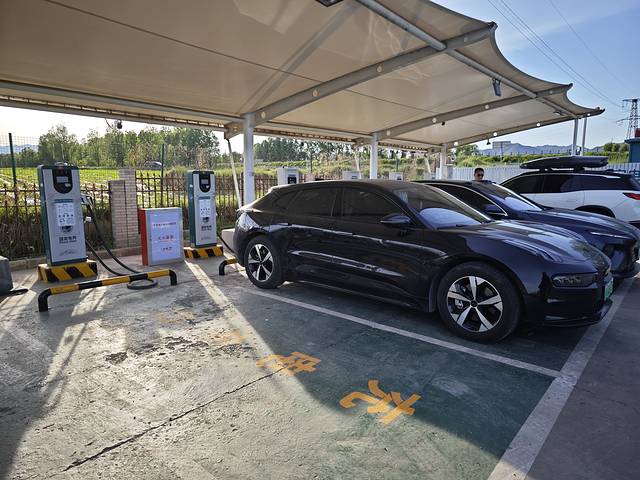 充电:由于我的车辆续航是730公里。实际续航也大概能够达到500多公里。前面说过,由于前一天晚上的歌,我的家充装的电费欠费,所以只充了40%,于是只能在去恒山的路上,找了一个高速服务区,进行了一个简单的补能。
