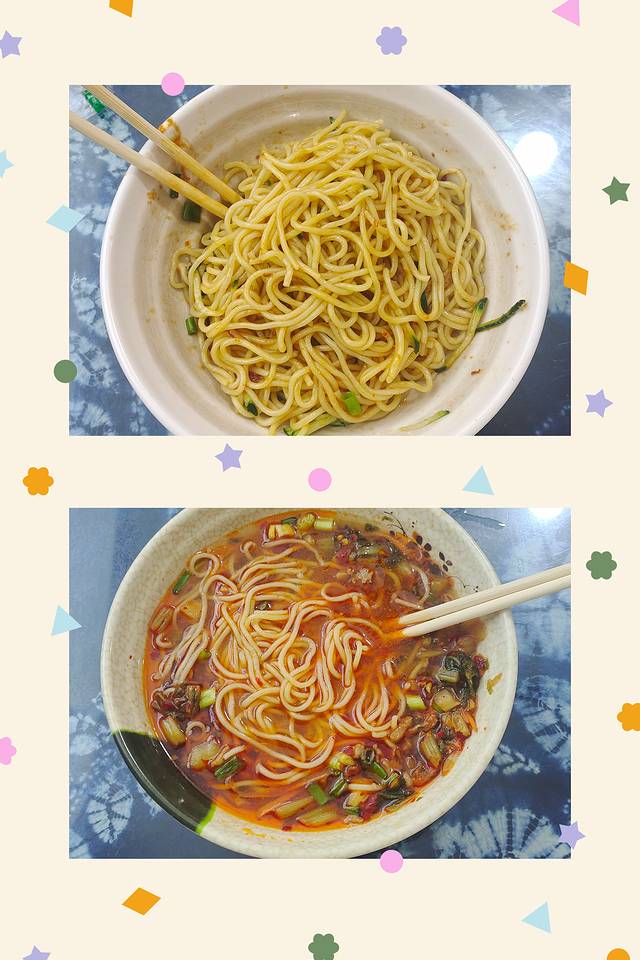 杂酱干拌面和雪菜肉丝面
