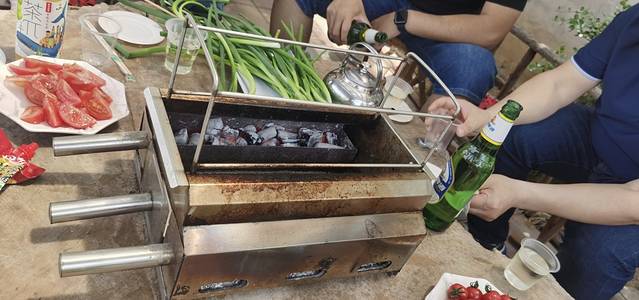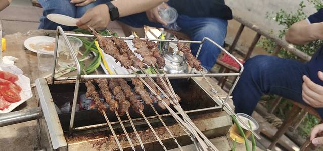 从博物馆离开后我们就开始了第一顿烧烤-临沂烧烤!淄博烧烤起源地就是临沂,独特的小饼卷烤肉也是淄博烧烤的与众不同!坐在小院子里,石桌上摆上烧烤炉,一边烤着,一边卷着,沾上调料,第一口就让人欲罢不能!第一次品尝,记忆犹新!孩子们吃的欢,大人们吃的恣!