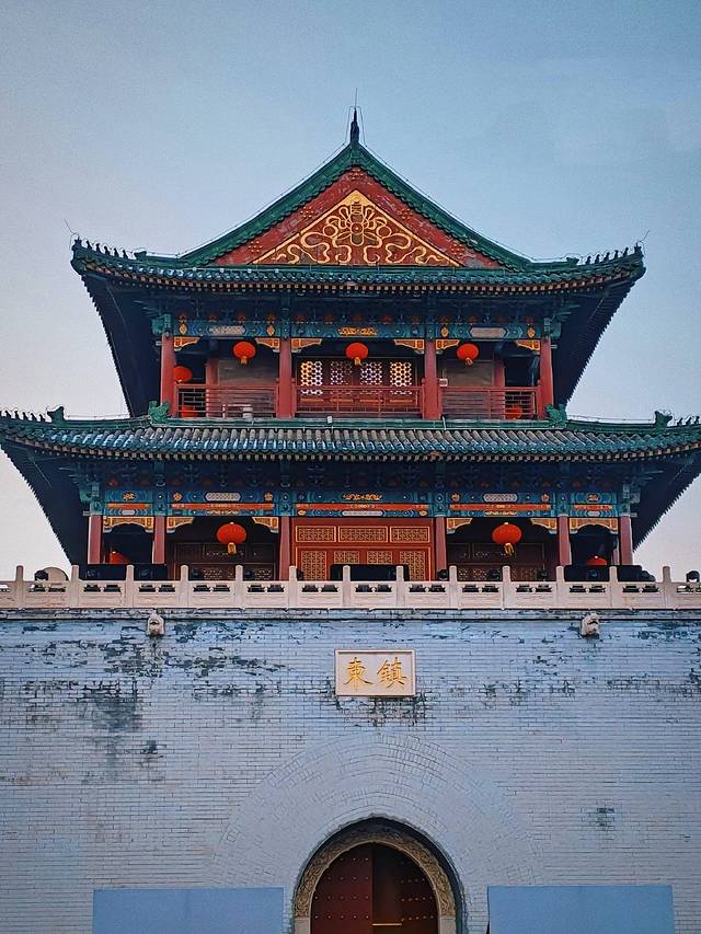 天津卫三宗宝,鼓楼、炮台、铃铛阁。天津鼓楼位于城中心,名为鼓楼,实为钟楼。鼓楼高三层,楼底的一层,是用砖砌成的一座方台,下宽上容目辟有四个拱形门洞,通行东西南北四条大街。