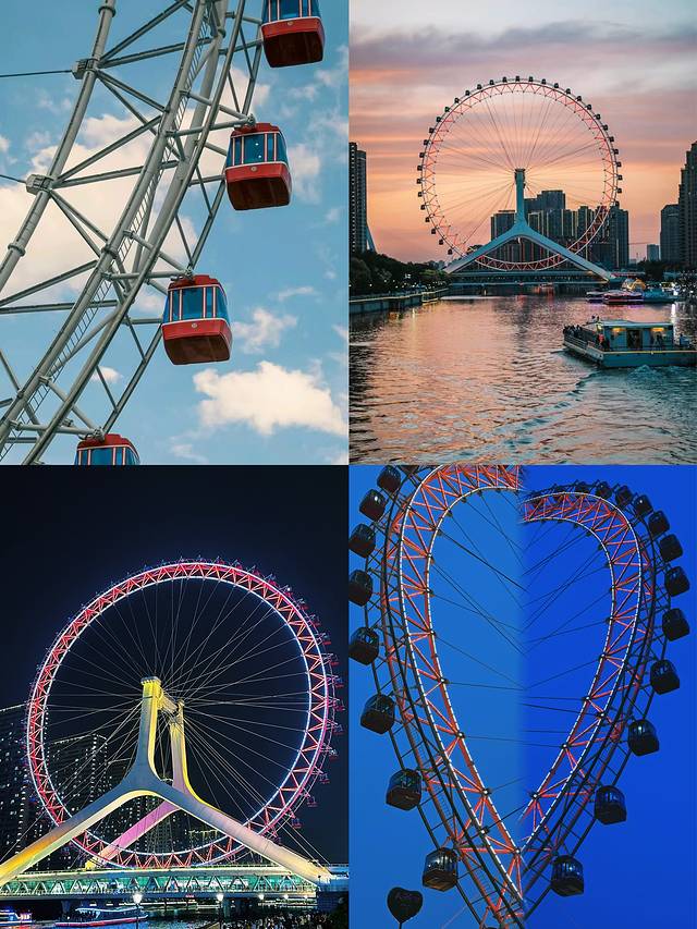 建在桥上的摩天轮,需提前预约,夜晚开灯更好看!值得去感受下天津的浪漫!