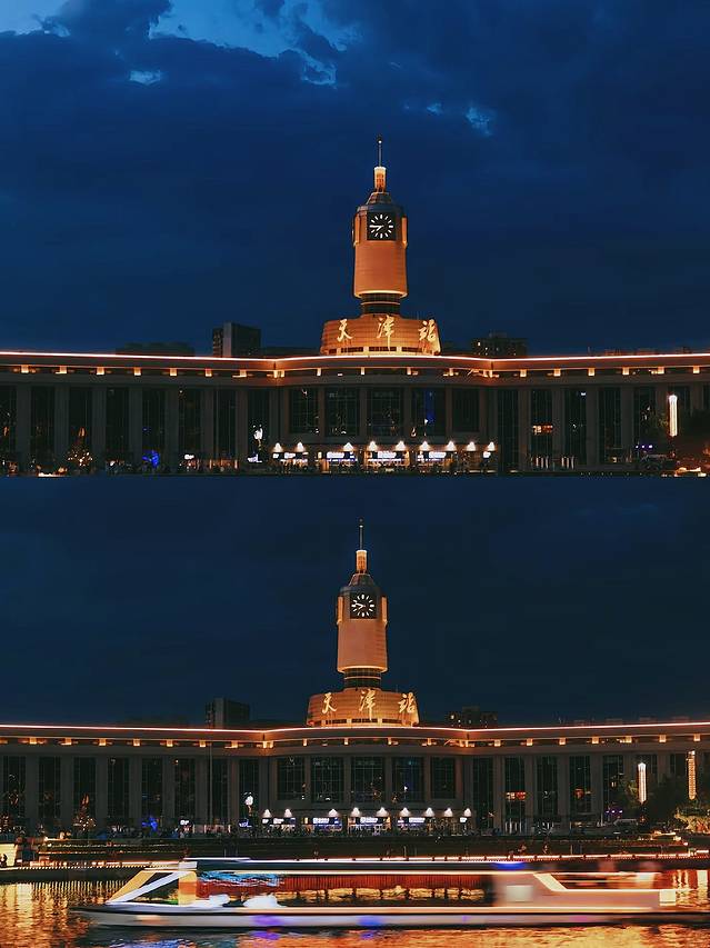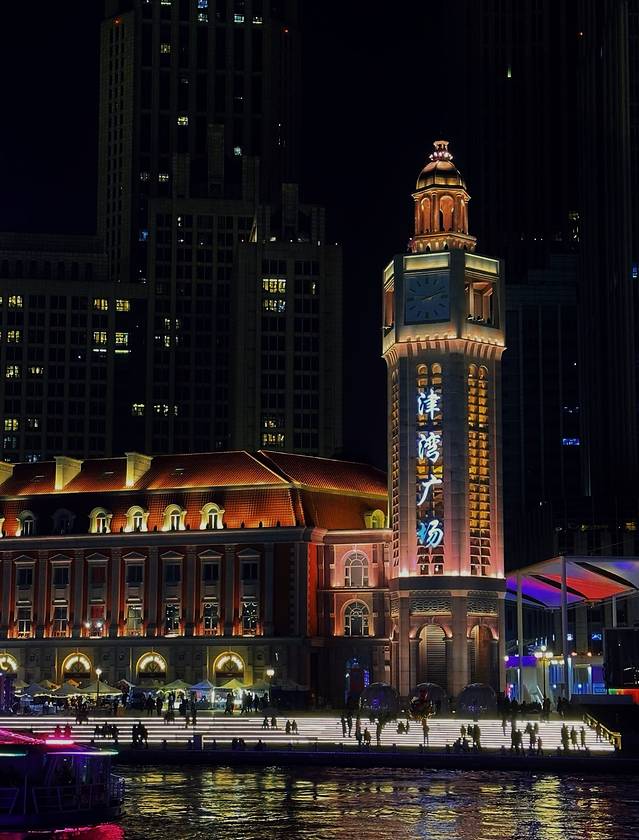 天津站出站就是世纪钟,对面就是津湾广场!津湾广场夜景真的是yyds!