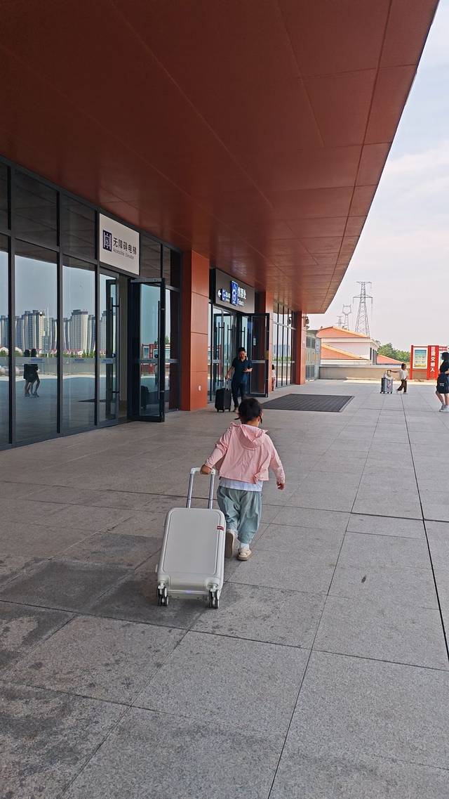 出发娃心情好,力气足,拉上行李箱就走