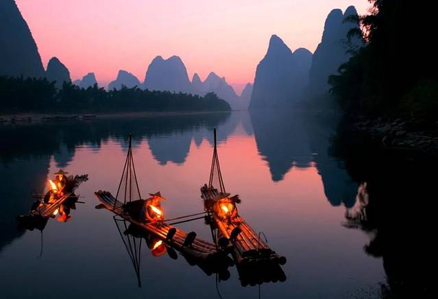 但“渔舟唱晚”似乎借给广西漓江会更合适