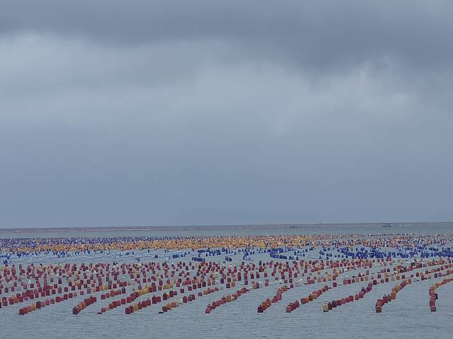 彩虹海是南澳岛深澳镇生蚝🦪养殖区 各种颜色的浮桶在海上就形成了彩虹色的大海!可惜天气阴,没太阳,错过了最美画面…