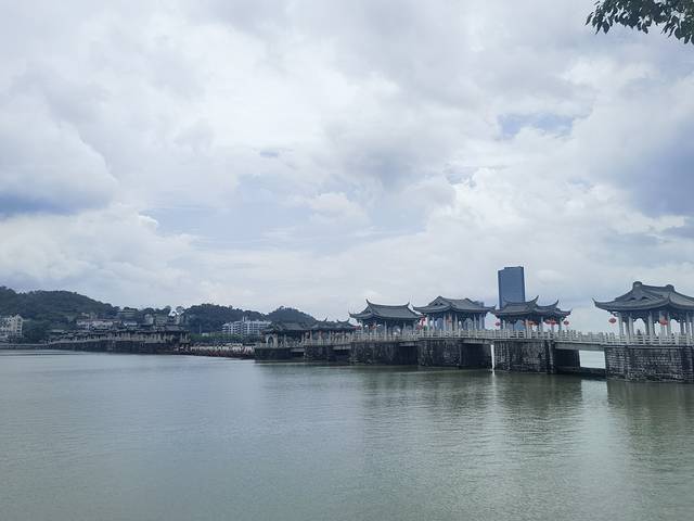 广济桥,中国四大名桥之一,被桥梁专家茅以升誉为“世界上最早的启闭式桥梁”。位于潮州古城东门外,横跨韩江,联结东西两岸,集梁桥、浮桥、拱桥于一体,为古代广东通向闽浙交通要津,是潮州八景之一,是潮州文化的历史地标、全国重点文物保护单位,国家AAAA级景区[2]。始建于南宋乾道七年(1171年);明朝嘉靖九年(公元1530年)形成“十八梭船廿四洲”的格局。
