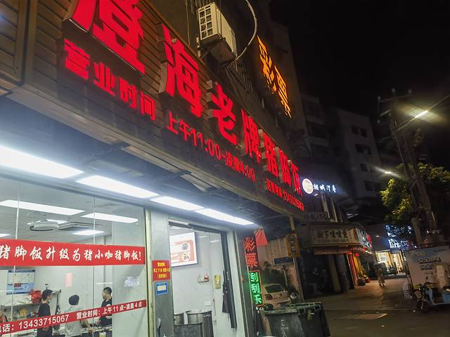 澄海老牌猪脚饭,口味正宗,猪脚饭 15块,猪脚加粉肠饭 20块,免费的汤很好喝