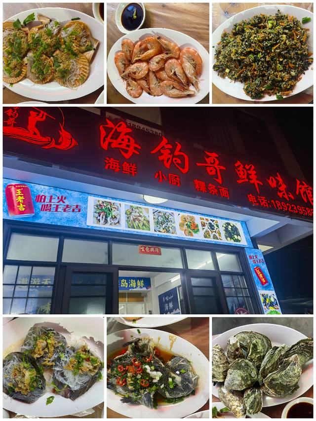 清蒸黑斑鱼、姜葱炒海蟹、白灼活海虾、粉丝蒸扇贝【6个】、粉丝蒸带子、清蒸生蚝、南澳紫菜炒饭、蒜蓉炒时蔬、紫菜鱼丸汤…