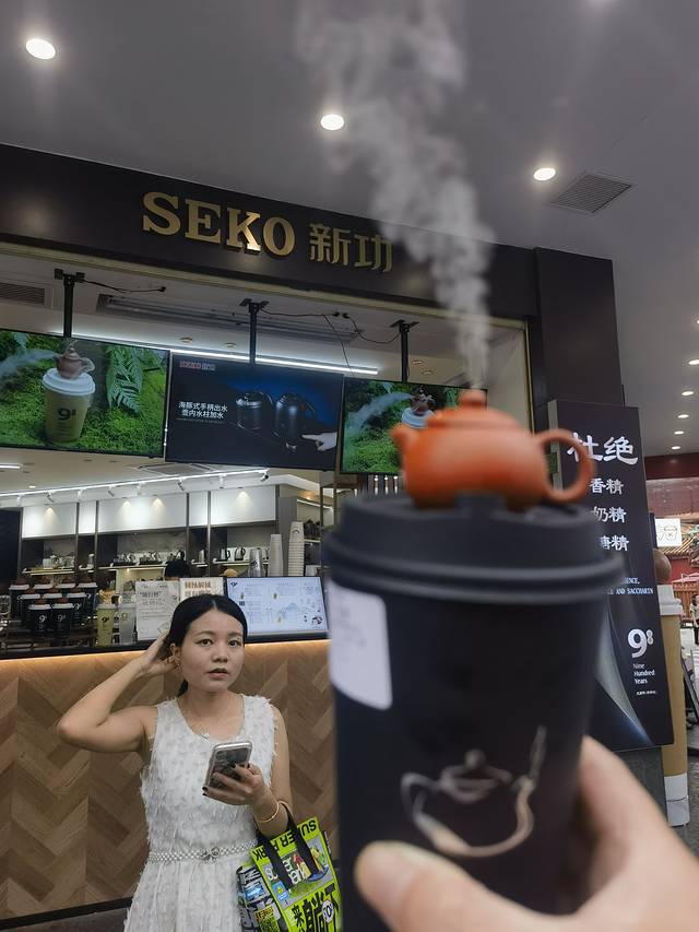 不知道是拍这个有点特色的奶茶,还是拍这个入镜的美女🤗