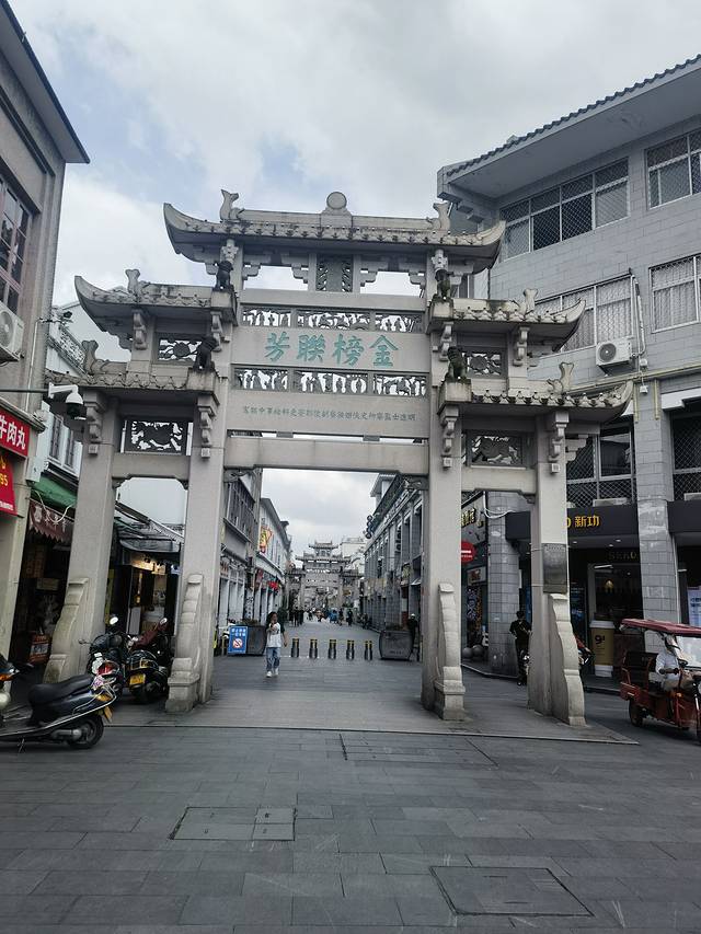 22座中式明清石牌坊与两侧南洋风味的骑楼互为映衬,明末清初引入具有南洋建筑风格的骑楼建筑,形成中西合璧的独特侨乡风貌。