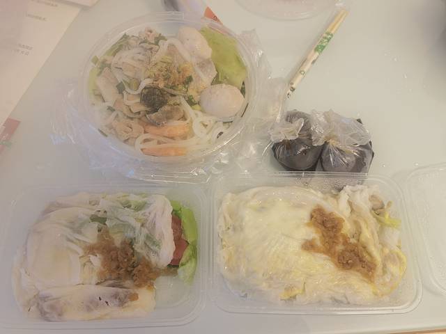 昨天没吃到的椰园肠粉,今天早上终于吃到了,虽然冒着大雨,好在7点开始营业…