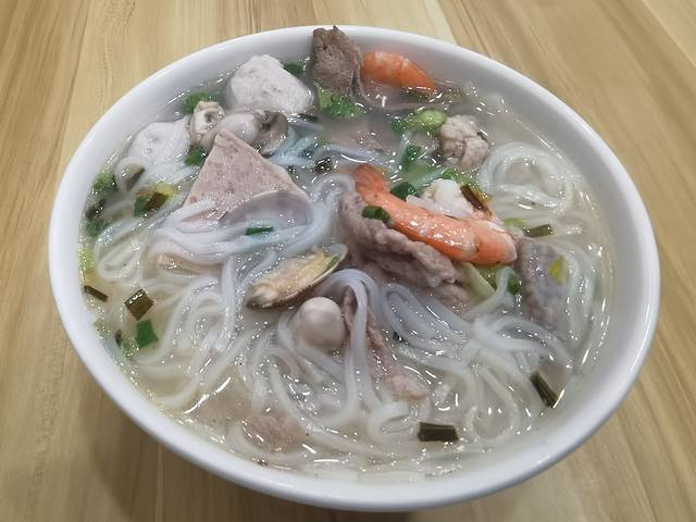 满满一碗粿条面,真材实料,除了粿条,还有鲜虾、花甲、猪肉丸、生蚝、猪肝…这一碗,20块钱。