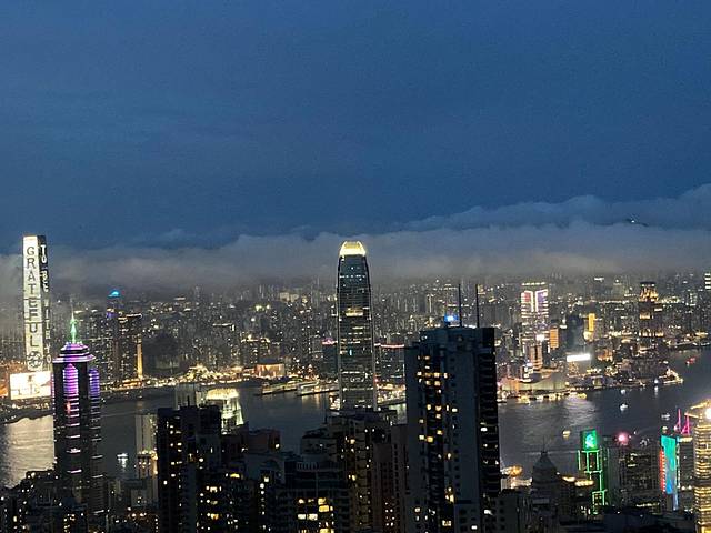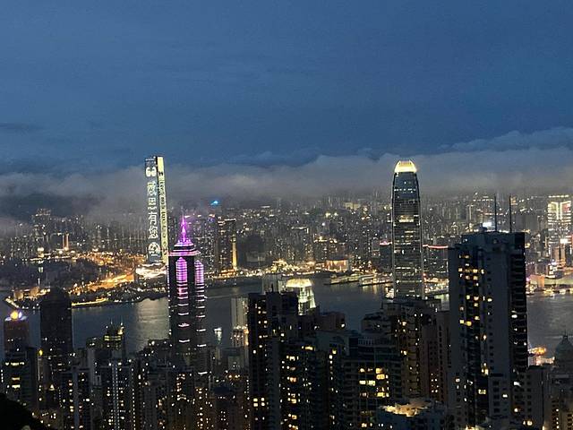 中环乘坐15C小巴到达太平山顶缆车处,乘坐小火车到达山顶观看夜景。