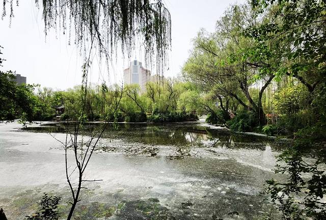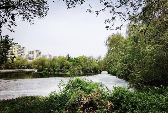 2、湖景。园内有个天香湖,湖水是从黄河引来的,沿湖四周植被非常丰富,有小桥连通小岛和陆地,漫步其间,一步一景、心旷神怡,一步一韵、豁然开朗,我们去的时候正好是柳絮四处飞扬的时节,湖面上飘浮着一层柳絮,仿佛是被冰雪覆盖了,俨然成了一道很菏泽的风景,沿湖区域相对整个公园来说,空气显得格外清新,氛围显得格外恬静,这道湖景给人一种很安逸的直感。