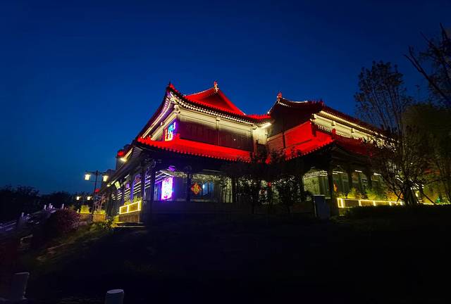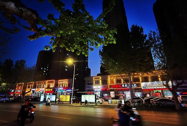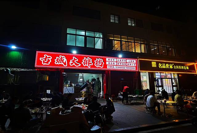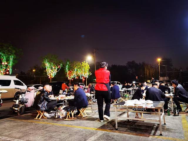 1、古城大排档。这家店位于菏泽广福街南端的青年湖畔,与这家店相遇纯属偶然!我们在老城曹州逛完后,沿着青年湖漫无目的地绕湖散步,在青年湖游船码头看到湖对岸灯火闪耀、人头攒动,于是过去一瞧究竟,没想到!这么一过去的结果,就是一屁股坐了下来。这家店新开不久,外面一张张小桌椅都围满了人,听口音都是当地的,老板看我们是异乡人,拿着小马扎坐在我们旁边热情地给我们推荐,还跟我们唠起了家常,一下子感觉很暖心。这家店隔着马路就是青年湖,跑到湖边可以一览无遗的看到青年湖的水幕音乐灯光秀。撸串中,看到一俩小卡车驰了过来,高音喇叭叫着:“25元代驾、25元代驾”,然后停了下来,在每张桌上发了一张名片,最后不忘说一句“需要打电话哈!”真是商机无处不在那!